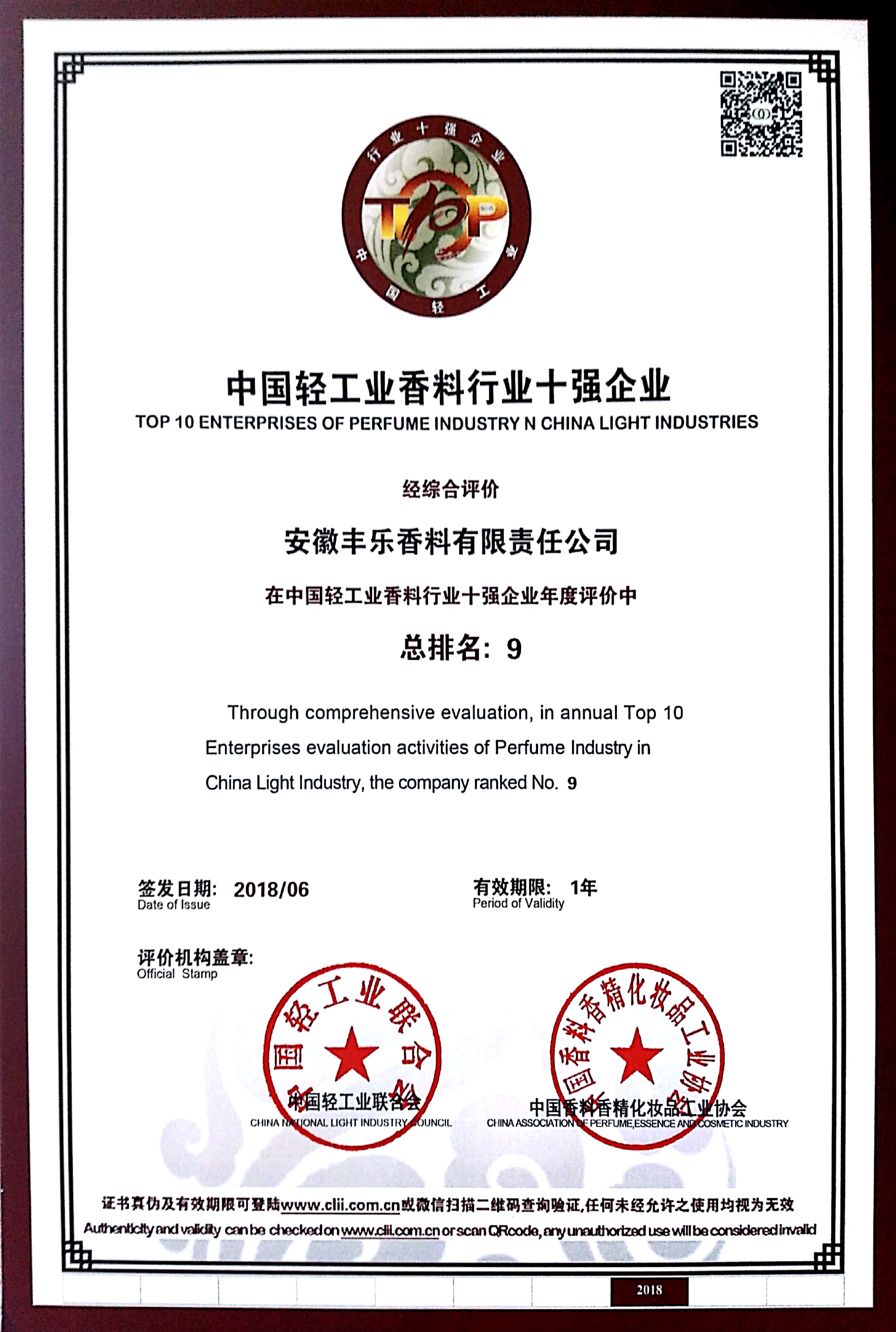 2018年-中國香料行業(yè)十強(qiáng)企業(yè)